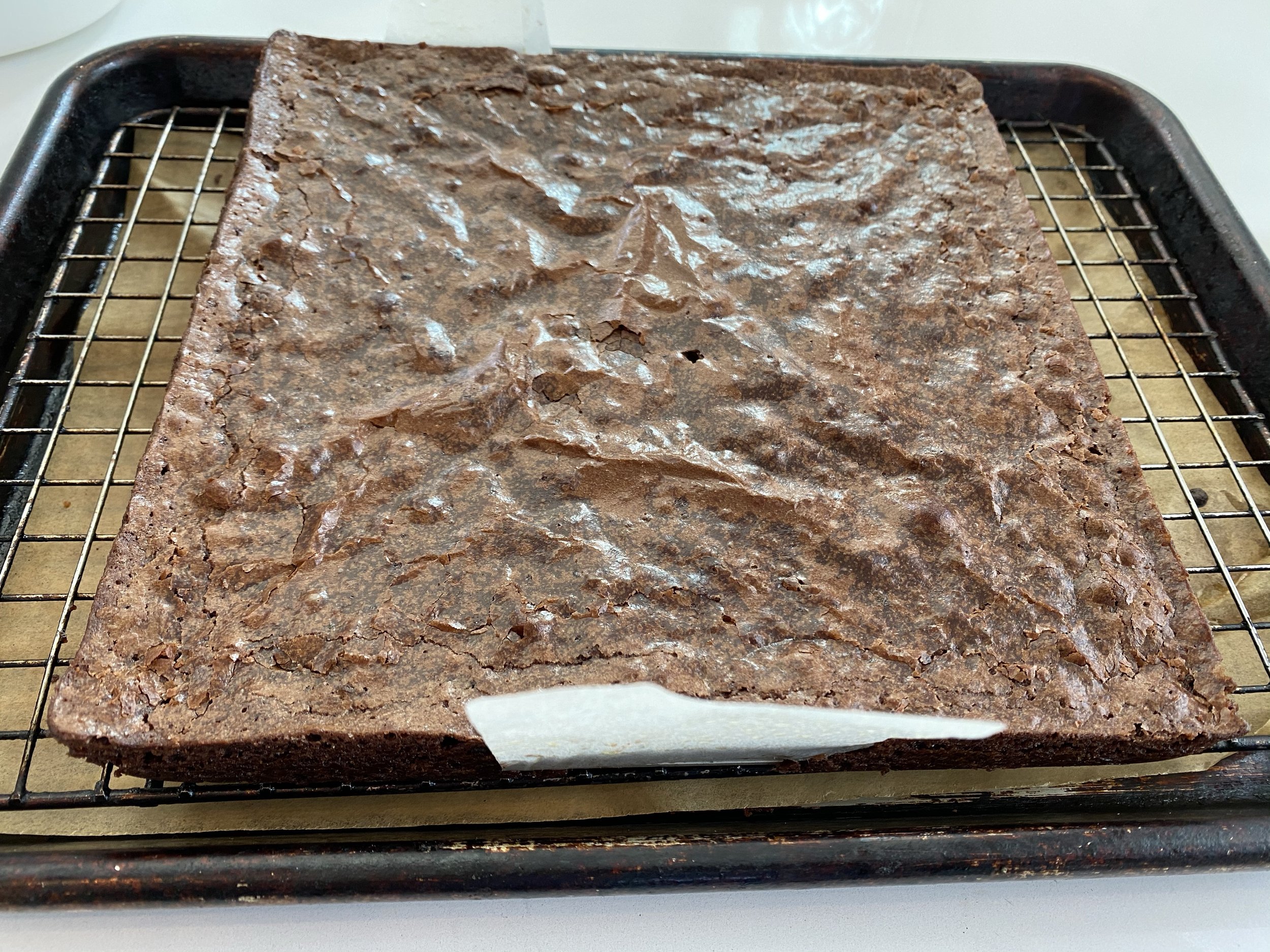- Cool the brownies in the pan until room temperature, then move to a wire rack.