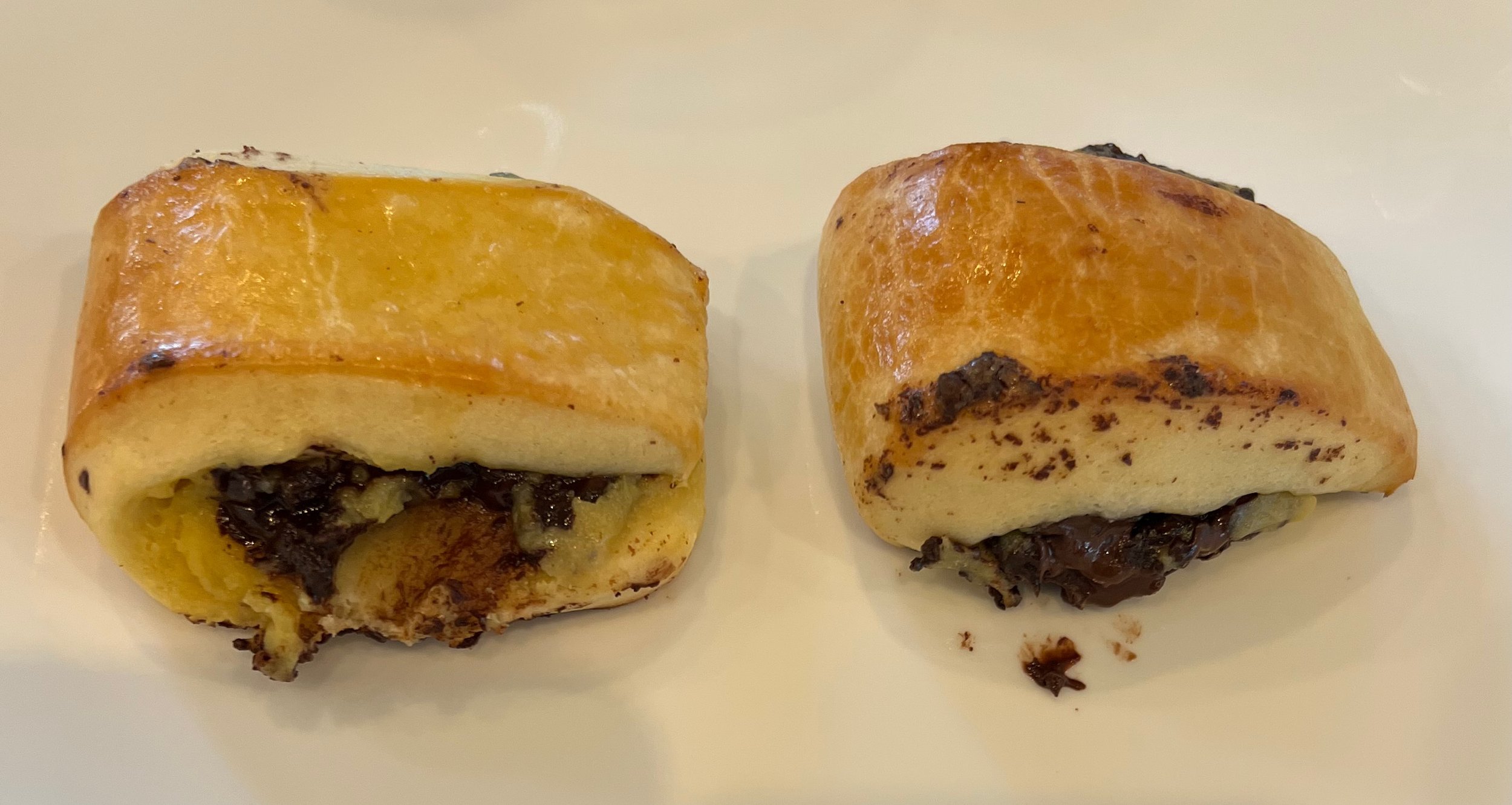 Serving size can make a big difference with food, especially finger foods. Smaller sizes can make imposing desserts or sides more accessible by empowering eaters to control the quantity. I have adapted Flour Bakery's famous Brioche au Chocolat recipe for my own use, cutting down on the size of the treats
