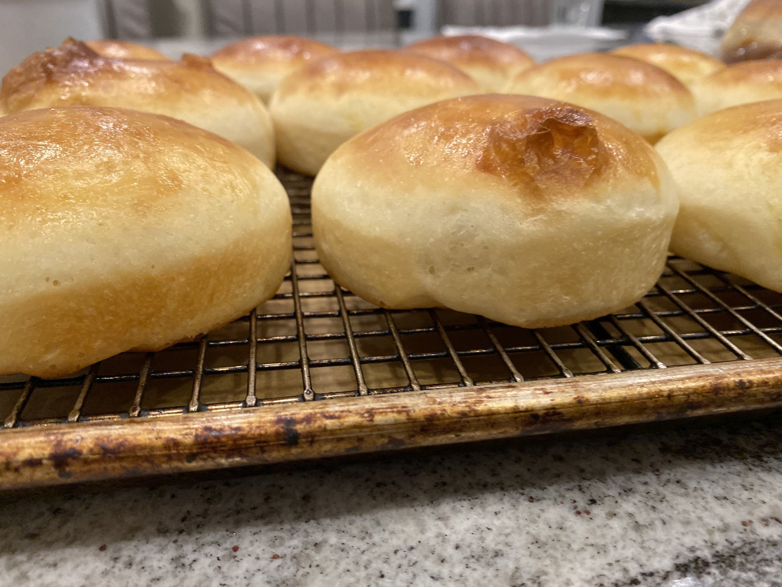 I have always hand-shaped my burger buns, but after buying a set of ring molds for English muffins, I saw the opportunity to create perfectly identical buns. I took my usual burger bun dough and portioned it into a dozen round balls. I then lightly oiled the inside of each ring mold and placed them on a parchment-lined baking sheet.It quickly became apparent that each ball was far too small to fill the ring mold, so I took a slightly oiled plastic bench scraper and flattened each ball into a disc, placing one in the center of each ring. I let the dough rise for a bit over an hour, brushed the tops with egg wash, then baked as per usual.The buns did indeed generally fill the rings. Though it would be a bit generous to say they were all identical, they were at least the same diameter. Furthermore,the cylindrical base (while a bit odd looking), did make them a bit easier to split by providing some landmarks.I'm not sure the technique worth the effort for burger buns, but it could prove useful for ensuring a fixed size when needed.